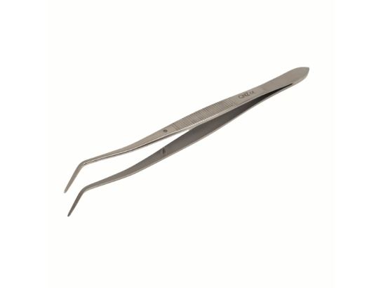 Pinza angulada de acero inoxidable 304, esterilizable en autoclave. Precisión, durabilidad y ergonomía para exploraciones médicas y odontológicas seguras y eficaces.