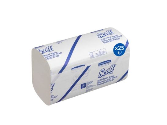 Toallas secamanos SCOTT® blancas, suaves y altamente absorbentes. Perfectas para mantener la higiene en cualquier ambiente. 25 paquetes de 175 hojas, dispensación eficiente y ecológica.