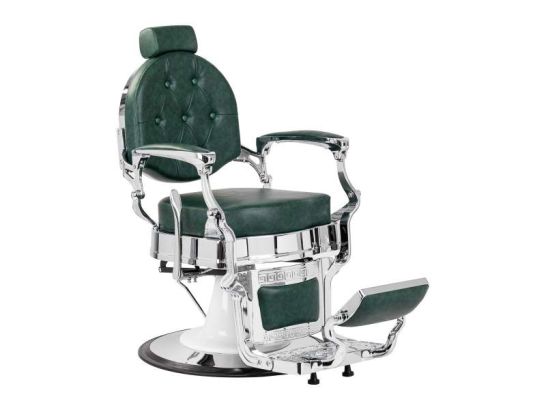Silla de barbero Gabbiano President cromada verde con ajuste hidráulico