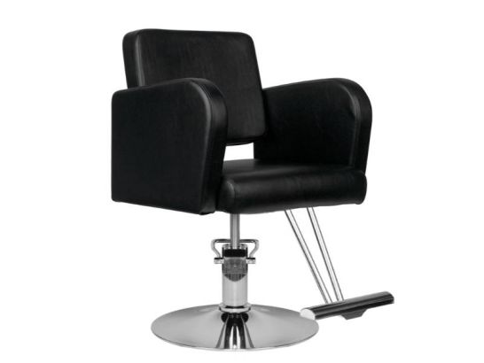 Silla de peluquería HS92 negra con base cromada y tapizado eco-cuero