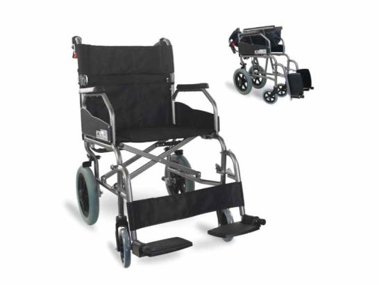 Silla de ruedas de aluminio Museo con respaldo abatible en elegante color negro. Comodidad y funcionalidad para una movilidad sencilla y segura en cualquier entorno.
