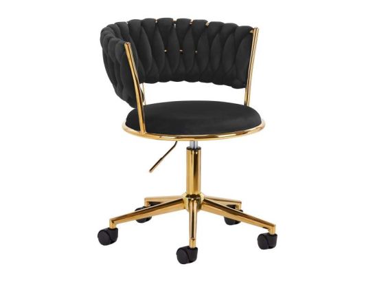 Silla giratoria 4Rico QS-GW01G con tapizado en terciopelo negro y base dorada