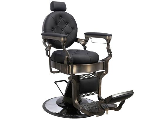 También dispone de acabados metálicos. Aunque está hecho con los materiales mas actuales, el estilo del sillón de barbero antiguo es inconfundible.