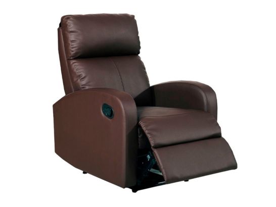 Esta tapizado en poli piel con efecto suave en color marrón de un alto confort en respaldo y asiento mullido con una densidad de espuma adecuada para el confort. Presenta un alto confort en la zona lumbar y cervical . Cuenta también con reposabrazos. Si buscas un sillón relax de aspecto bonito, elegante, con prestaciones y un precio interesante este es sin duda tu sillón relax.