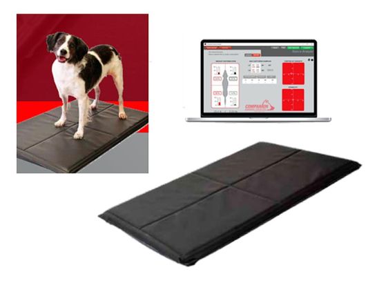 El Stance Analyzer Companion es una plataforma de distribución de peso corporal específicamente diseñada para la especie canina que mide con precisión el peso de cada extremidad.