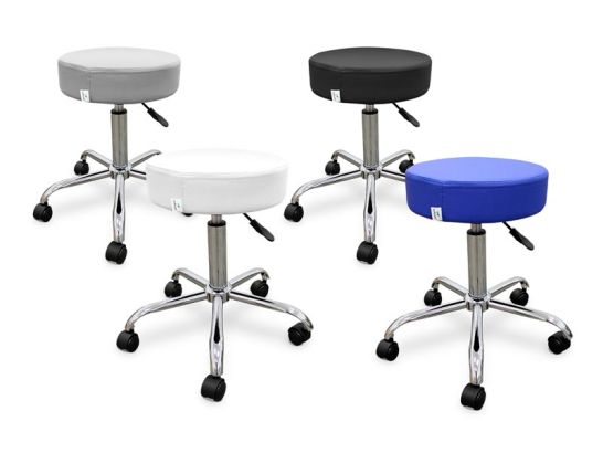 Taburete Wellcore con ruedas autofrenables. El diseño clásico, aún más cómodo y seguro. Con un tapizado de calidad y una estructura resistente.