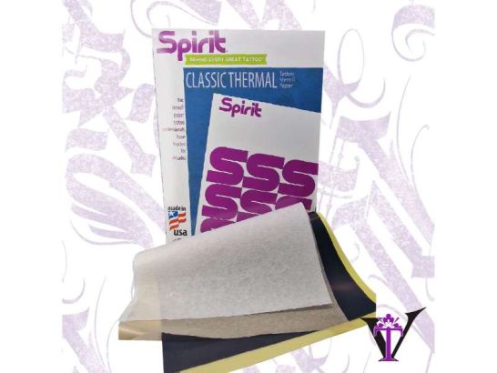 El Termocopiador PAPEL SPIRIT Tamaño A4 Thermal es el complemento ideal para los artistas del tatuaje que buscan precisión y calidad en sus diseños. Este papel hectográfico Spirit Classic Thermal ha sido diseñado específicamente para reproducir los diseños de tatuajes de manera rápida y efectiva, ya sea a través de una copiadora o impresora térmica.