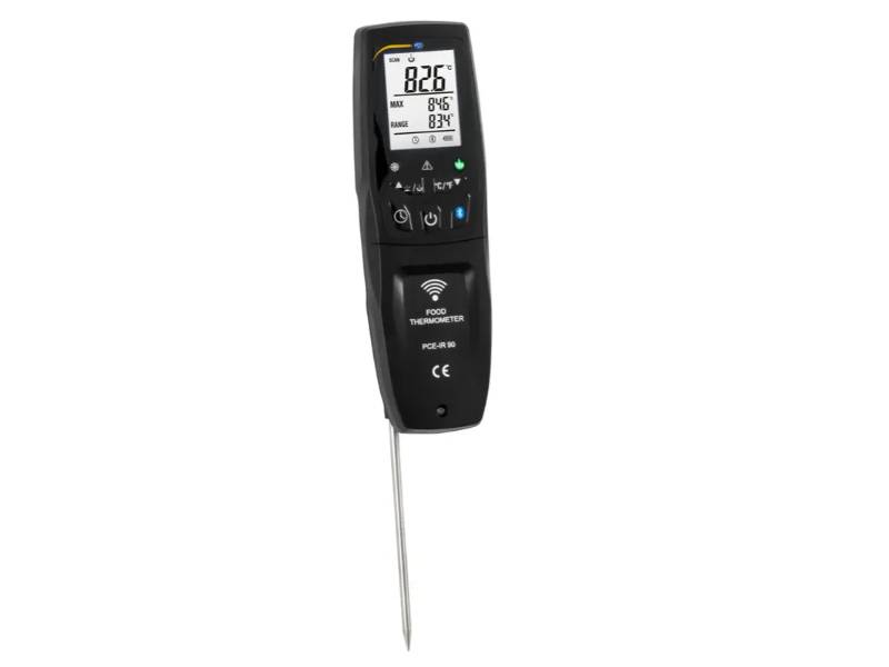 Este termómetro es altamente funcional y fácil de usar. Con sus dos sensores puedes medir tanto la temperatura superficial como la interna de tus alimentos, permitiéndote controlar el proceso de cocción de manera precisa. El indicador de valoración te ayudará a determinar cuando tu alimento está a la temperatura óptima. La conexión Bluetooth con tu dispositivo móvil hace que la tarea sea aún más sencilla ya que puedes registrar tus mediciones y analizarlas posteriormente mediante la aplicación gratuita. El diseño ergonómico del termómetro hace que sea fácil de manejar y la pantalla retroiluminada garantiza una excelente visibilidad en cualquier ambiente. Además, la posibilidad de recargarlo mediante su estación de carga lo hace más conveniente y práctico. Ahora, con este termómetro para alimentos PCE-IR 90 podrás asegurarte de que tus alimentos se encuentran a la temperatura adecuada en cualquier momento y en cualquier lugar.