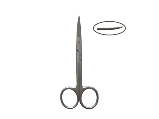 Tijera quirúrgica curva de acero inoxidable, esterilizable, ideal para cortes precisos en tejidos delicados con máxima durabilidad y seguridad en entornos médicos y odontológicos.
