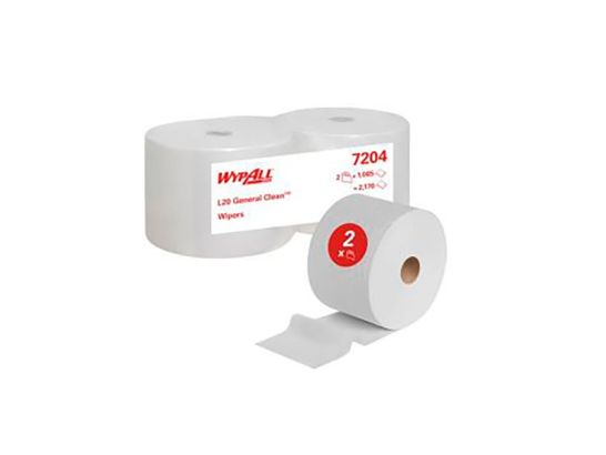 Paños WYPALL® L20 de 2 capas en rollo: 2170 paños blancos, alta absorción y durabilidad. Perfectos para limpieza industrial y doméstica. ¡Eficiencia al alcance de tu mano!