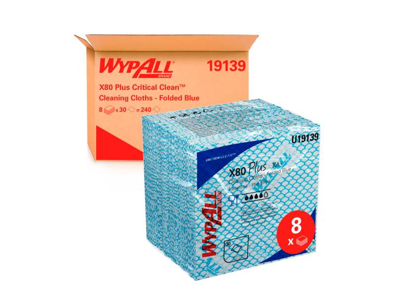 WYPALL® Critical Clean™ Paños de limpieza X80 Plus azules, 8 x 30 ud - Ref. 19139