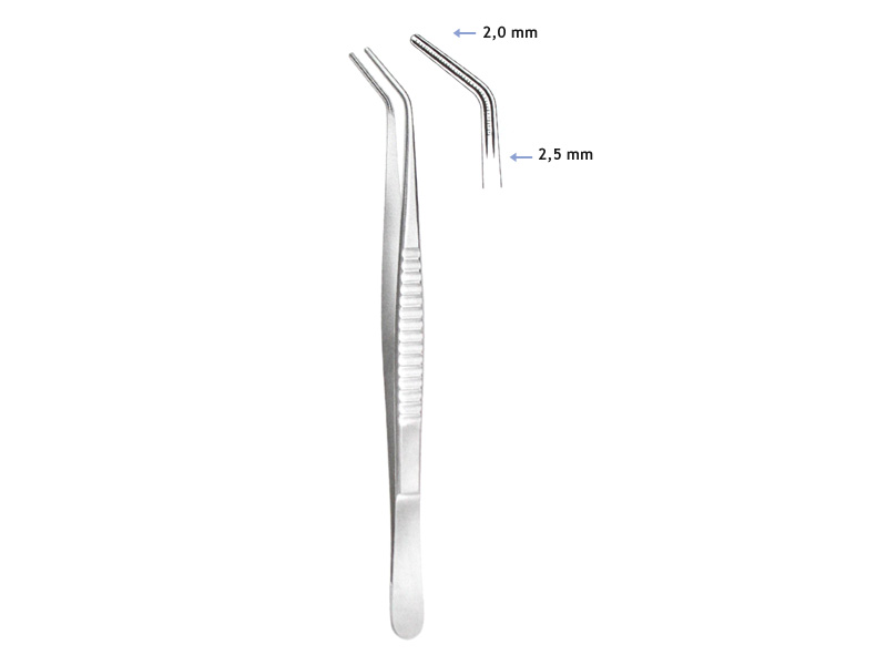 Atraumaattiset pihdit. DeBakey-malli. Taivutettu. Kärki 2,0 / 2,5 mm.