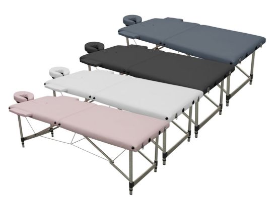 Kokoontaitettava alumiininen hoitopöytä, 185 x 70 cm, erittäin kevyt ja kestävä, metallikiristimillä. Säädettävä korkeus, öljynkestävä verhoilu ja kokoontaitettava muotoilu. Sisältää nivelletyn niskatuen ja käsinojat. Ihanteellinen ammattimaiseen liikkuvuuteen.