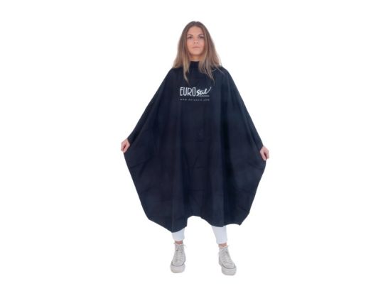 Protégez vos clients avec style grâce à la cape de coupe noire Eurostil. Nylon résistant, ajustable et facile à nettoyer.