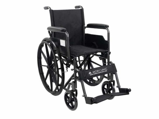 - Poids total : 18.5 kg (incluant les reposapieds et accoudoirs).