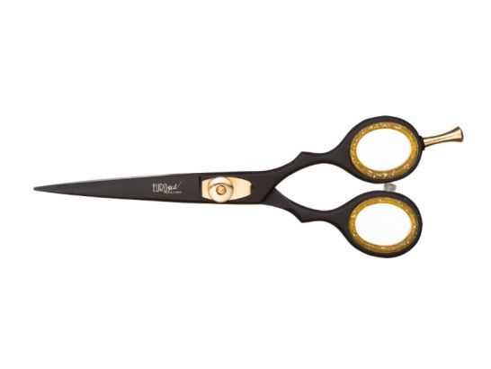Des Ciseauxs de Coupe 5,5 pouces avec Lame en forme de rasoir, couleur noir mat. Précision et confort pour coupe professionnelle.
