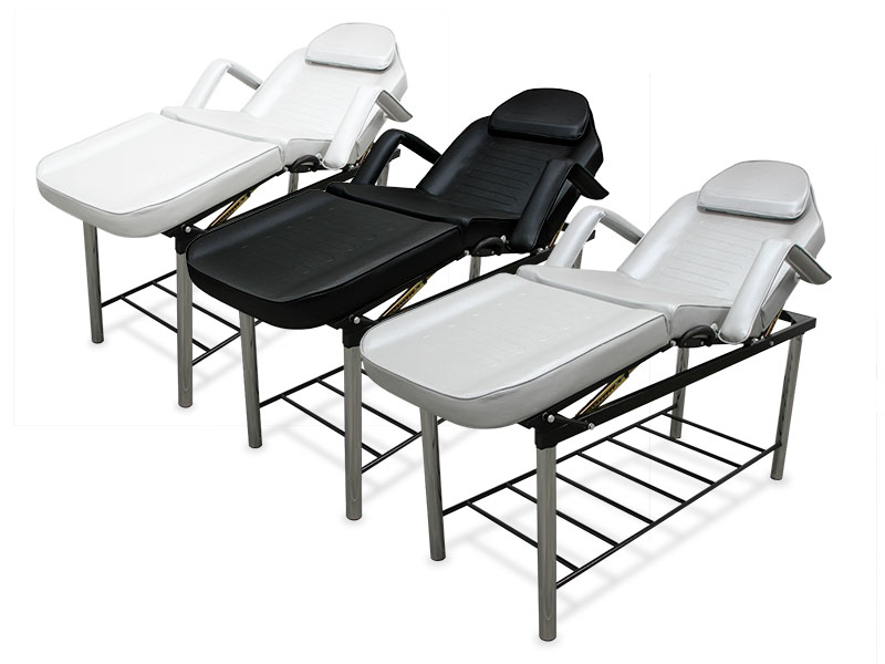 Civière fixe à 3 corps réglables en inclinaison, équipée de différents accessoires pour une plus grande fonctionnalité. Il est doté d'un revêtement en similicuir de haute qualité, résistant aux différentes projections d'eau et d'huiles.