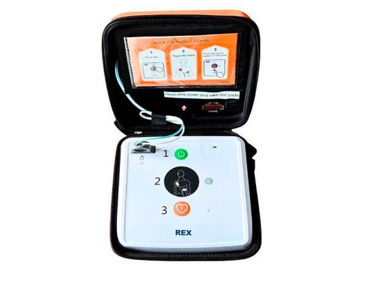 Défibrillateur portable semi-automatique REX iAED S1 avec guidage vocal et électrodes universelles