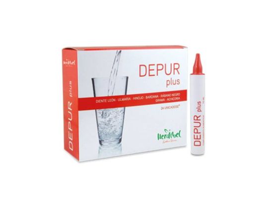 DEPUR PLUS est un complément alimentaire sous forme de boîte contenant 24 ampoules unidoses de 10ml chacune, spécialement conçu pour favoriser l'épuration et le bien-être de l'organisme. Sa composition riche en extraits secs et fluides de plantes naturelles comme le pissenlit, l'ulmaire, le fenouil, la bardane, le radis noir, la chicorée et la graminée lui confère des propriétés purifiantes et digestives, idéales pour maintenir une bonne santé et un bien-être optimal.