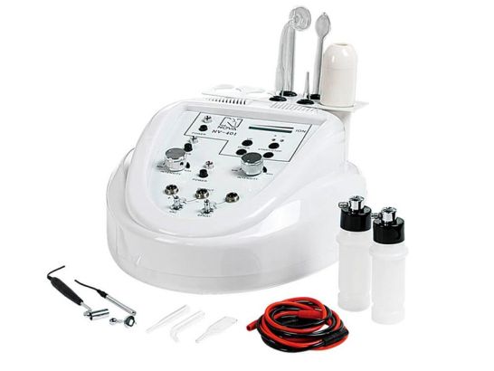 Équipement facial à 4 fonctions, haute fréquence, galvanique, ventouses et spray. Facile à utiliser, idéal pour un travail complet.