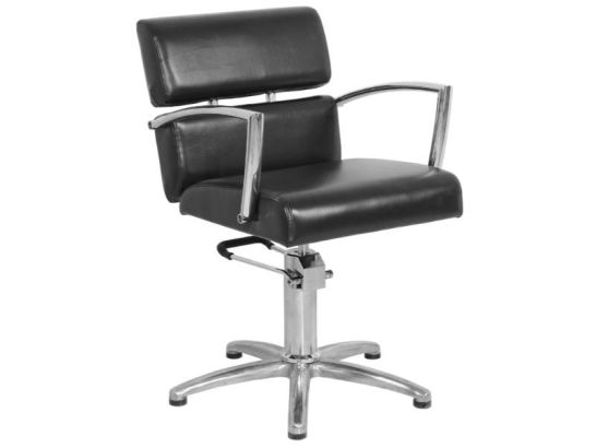 Fauteuil de coiffure noir Gabbiano, réglable et stable, design moderne en similicuir, idéal pour un confort et une élégance professionnelle en salon.
