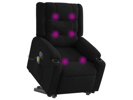 Fauteuil de massage Électrique inclinable Noir en Tissu avec Fonction Levée