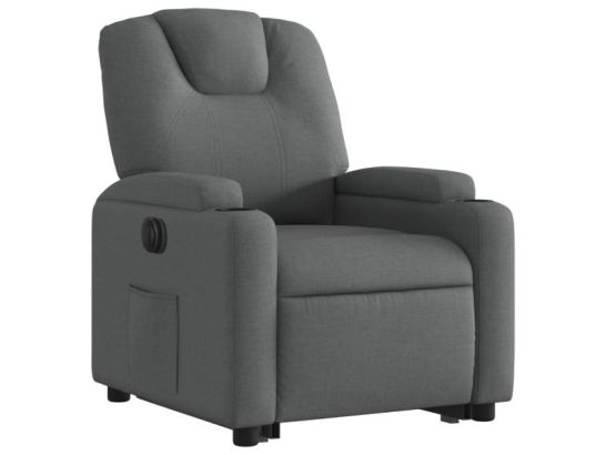 Offrez-vous le confort ultime avec le fauteuil électrique inclinable Lève-personne en tissu gris foncé, conçu pour faciliter le lever et garantir un repos relaxant.