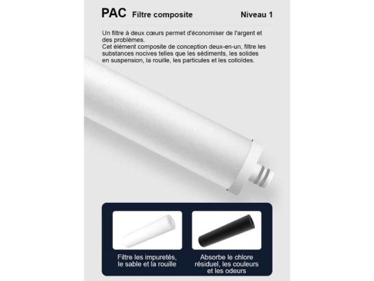 Filtre Composé PAC FU-3T1 : purification efficace de l'eau, élimine impuretés jusqu'à 0,01 microns, garantie d'une eau propre et saine pour votre famille.