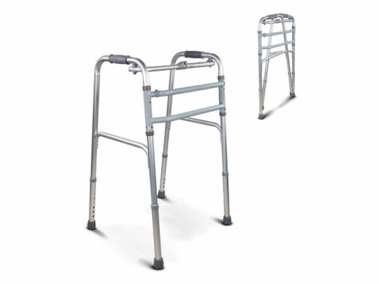 Deambulateur pliable Mezquita en aluminium, léger et réglable (76-94,5 cm). Idéal pour les personnes âgées, sécurisé et facile à transporter pour une mobilité optimale.