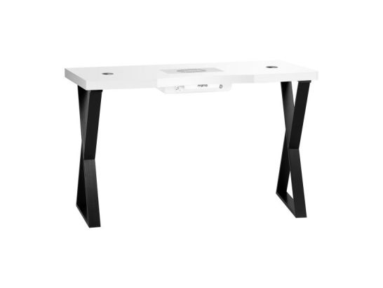 Table de manucure Momo 04 blanche et noire, équipée d’un aspirateur intégré pour un espace de travail propre et élégant, idéale pour professionnels exigeants.
