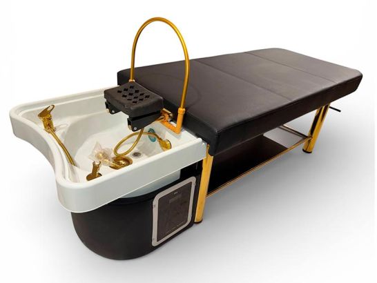 Le Head Spa Kira est l'option idéale pour transformer votre centre d'esthétique ou de coiffure en um espace de bien-être holistique et de relaxation premium. Cette table professionnelle fusionne un design élégant et moderne avec une base en aluminium au choix entre doré ou argenté, apportant distinction et luxe aux spas et salons de beauté.