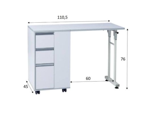 Table Manucure Pliable Naxos 110,5x45 cm avec 3 Tiroirs et 4 Roulettes