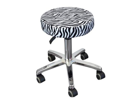 Tabouret sans dossier réglable 44-58 cm, pivotant 360°, avec motif zèbre moderne. Confort et mobilité idéales pour esthéticiennes, tatoueurs et espaces créatifs.