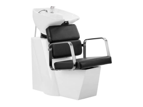 Unité de lavage Gabbiano Porto avec bac céramique ajustable, design élégant, confort optimal et robustesse pour salons exigeants.