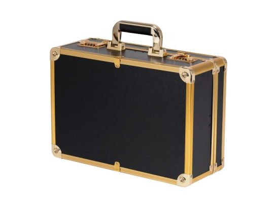 Valise dorée POL-925, idéale pour barbiers et coiffeurs pros. Organisation optimale, compartiments pratiques, design élégant et transport facile.