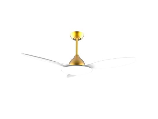 Ventilateur plafond 48" EnergySilence, moteur DC 35W silencieux, LED 36W, télécommande, 6 vitesses, minuterie et design Light Gold Blanc pour un confort optimal toute l’année.
