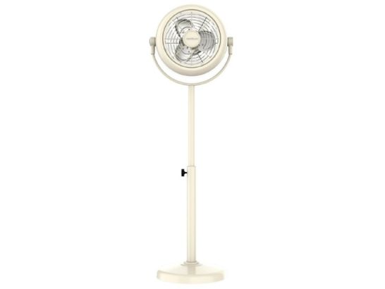 Ventilateur sur pied beige 10" puissant (25 W), silencieux avec 2 vitesses et inclinable, parfait pour un rafraîchissement élégant et efficace à la maison ou au bureau.
