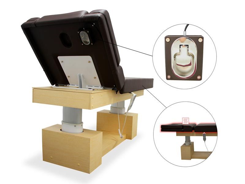 Ο κομψός σχεδιασμός αυτού του ηλεκτρικού τραπεζιού SPA δεν θα σας αφήσει αδιάφορους. Με στιβαρή δομή καλυμμένη από ανοιχτόχρωμο ξύλο και άνετη γεμισμένη επιφάνεια από αφρό υψηλής πυκνότητας. Είναι ένα φορείο με 2 σώματα και 2 μοτέρ, ειδικά σχεδιασμένο για να παρέχει τη μεγαλύτερη άνεση κατά τη διάρκεια περιποιήσεων ομορφιάς ή SPA.
