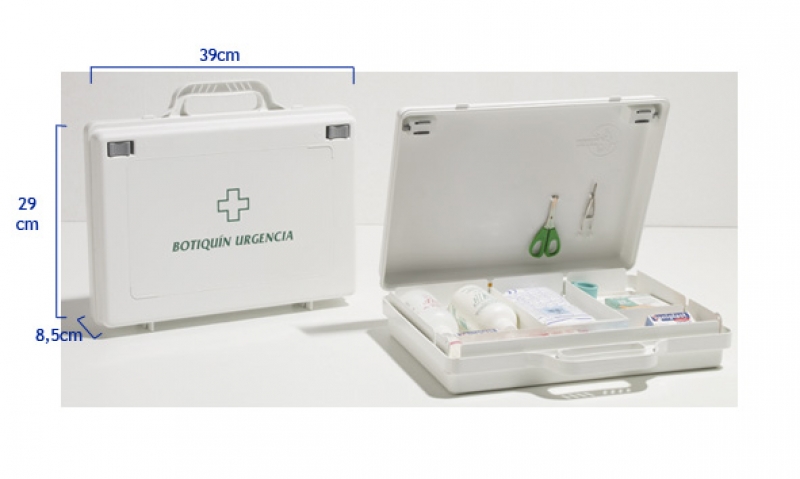 * Το περιεχόμενο περιλαμβάνει: 1 μπουκάλι αλκοόλ 250. - 1 μπουκάλι υπεροξείδιο του υδρογόνου στα 250. - 1 συσκευασία ζιγκ-ζαγκ Βαμβάκι 50γρ. - Sterile Gauze 3 Φάκελοι 20x20 5U. - 1 πλαστική λαβή ψαλιδιού 13cm. - 1 λαβίδα 8εκ. - Λωρίδες 1 κουτί 20 μονάδων - 1 ρολό ταινίας 5x1'5cm. - 1 ρολό ταινίας 5x2'5cm. - 3 ζώνες πλέγματος 5x5 - 2 επίδεσμοι 5x7 - 1 -1 Venda 5x10 πλέγμα από καουτσούκ τουρνουά - 2 γάντια από λατέξ.