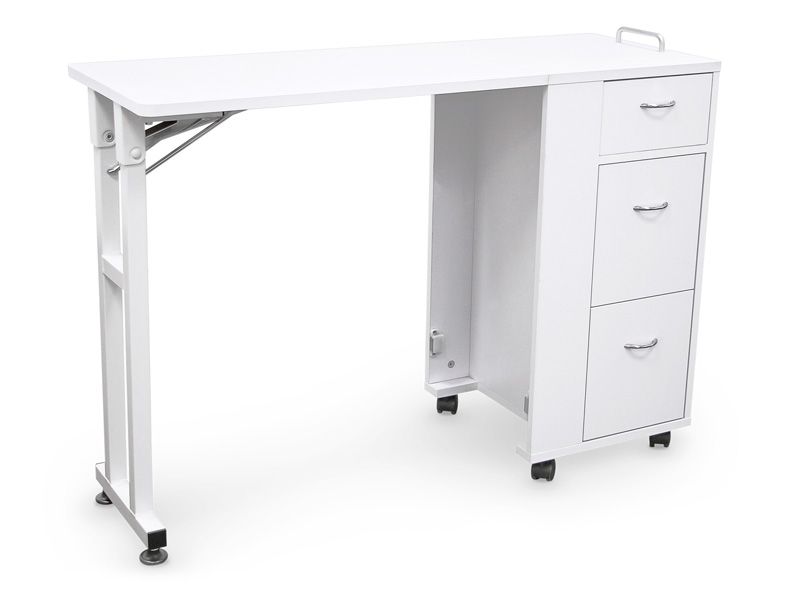 Πτυσσόμενο τραπέζι μανικιούρ που περιλαμβάνει συρτάρι με το οποίο τα προβλήματα χώρου θα πάνε στο βάθος αφού με μια απλή κίνηση προκύπτει ένα πρακτικό συρτάρι που μεταφέρεται εύκολα και τοποθετείται όπου χρειαστεί.