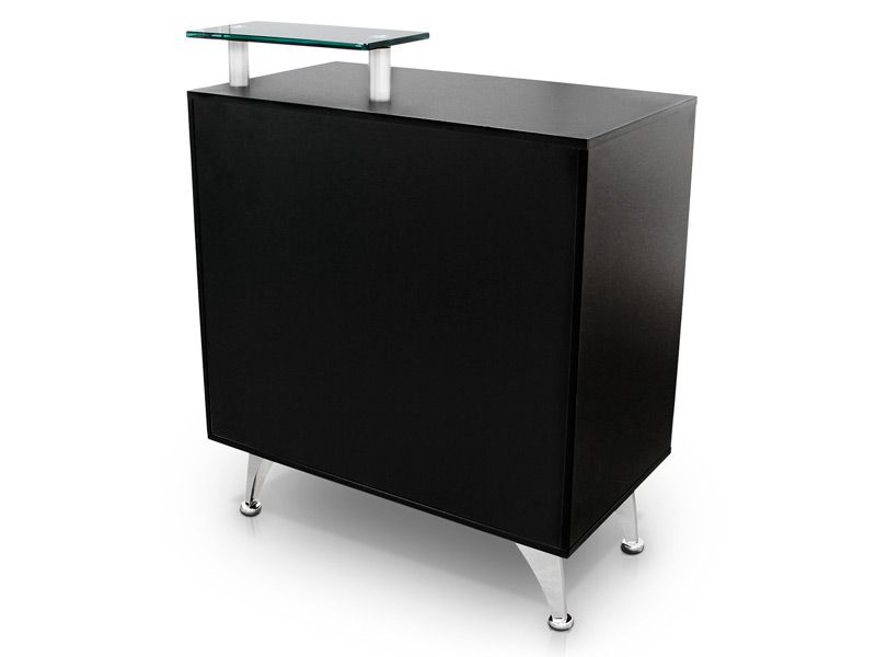 Νέα ρεσεψιόν για κουρεία και στούντιο τατουάζ με μεγάλο χώρο εργασίας και πολλά ράφια. Περιλαμβάνει συρτάρι και έχει φινιρίσματα χρωμίου για χερούλια και πόδια.