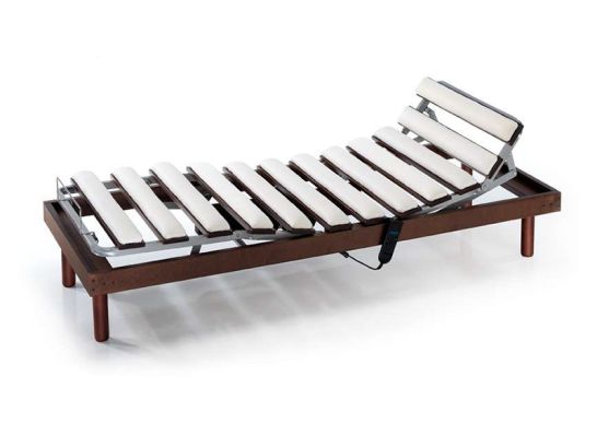 Electric articulated bed base with 5 planes with upholstered beech slats and 190 cm long.