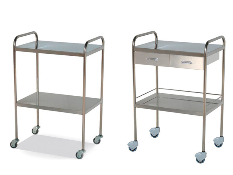 Auxiliary trolley with 2 shelves, 2 pushers and castors