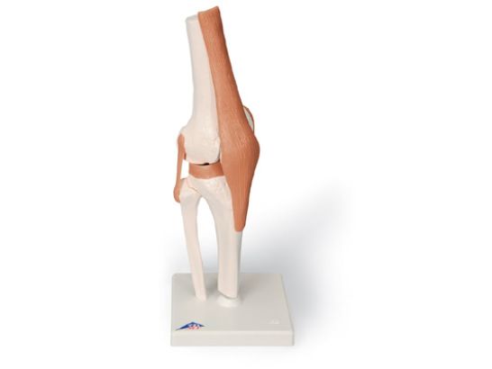 It consists of a part of the femur, tibia and part of the fibula. Also includes meniscus, patella with quadriceps tendon and joint ligaments. Articulated on a support.