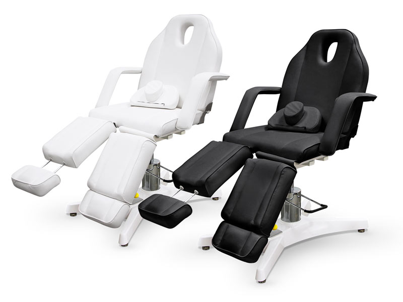 New hydraulic chair with HQ base that stands out for its great versatility and great finishes . It allows its height to be adjusted by means of a pedal on the base, it has extensible and independent leg supports, a folding backrest and it has removable armrests .
