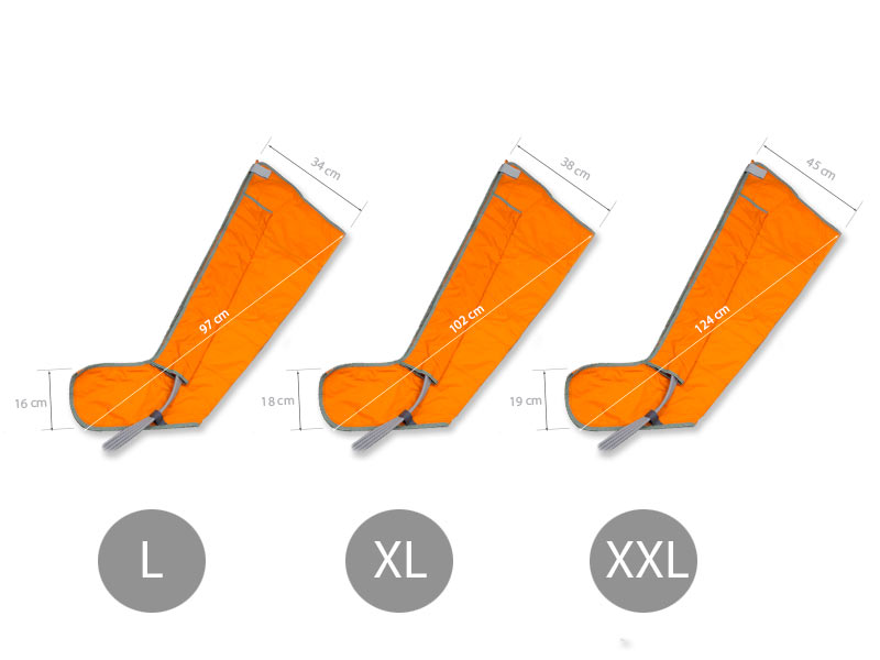This pair of boots are a complement for pressotherapy UNIX 8100 (Ref. 1087-UAM-8100). They are available in three different sizes to facilitate choosing the one that better adatps to your needs. Hoses included. Orance colour with grey details.