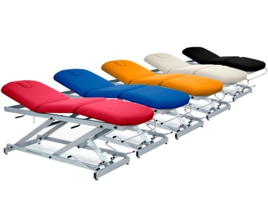 3-section hydraulic examination table with manual central fold, roll holder and facial cap.