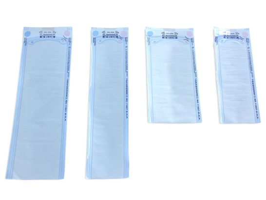 Sterilisation bag with indicators for water vapour and ethylene oxide. Closing through heat sealing. Available in several measures in boxes of 800 units.