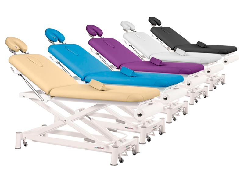 Hydraulic table 2 sections with scissors base and removable articulated headrest.