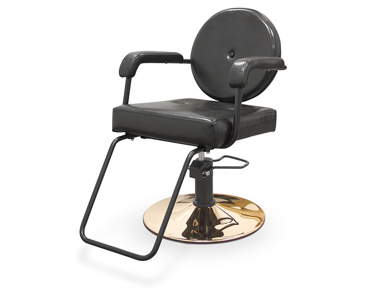 Styling chair Brindisi with original round backrest and high quality finishing. Height adjustable through hydraulic system. It features a big round base to provide great stability, footrest and comfortable padding. 360º turning.